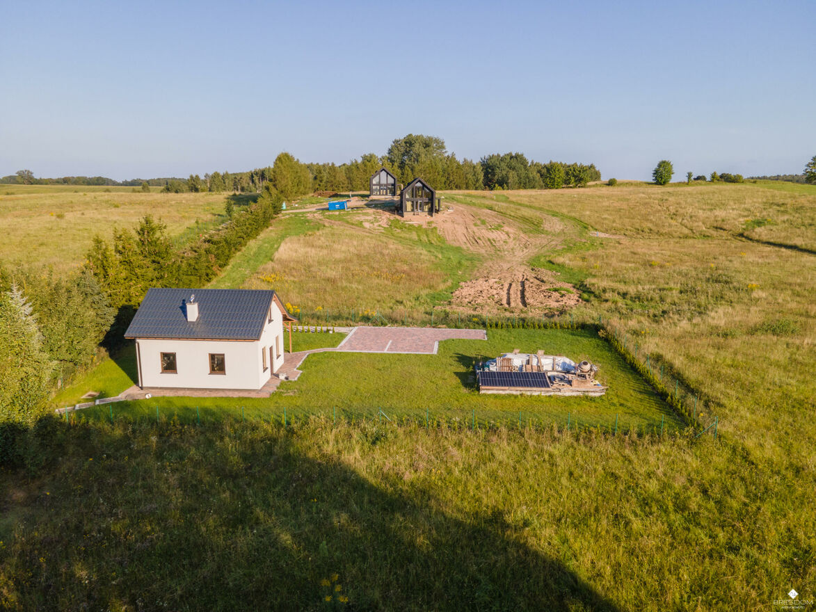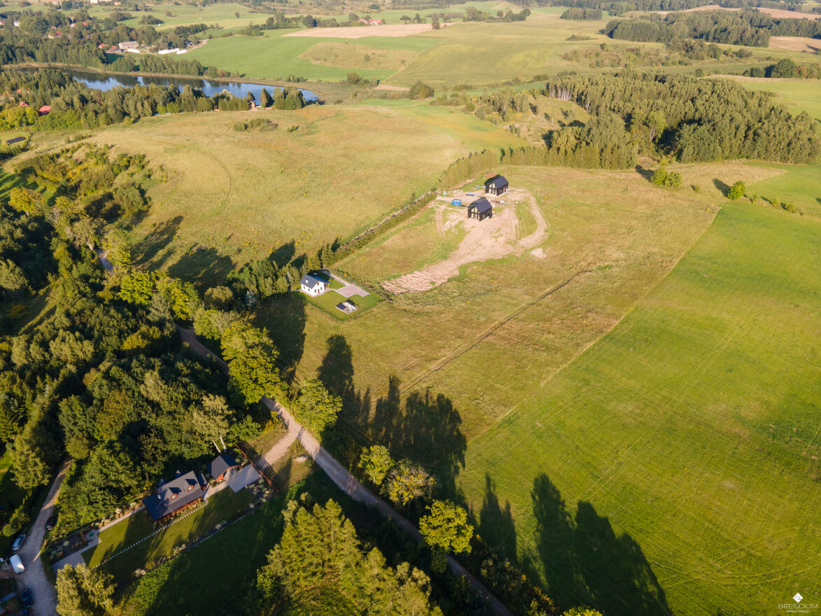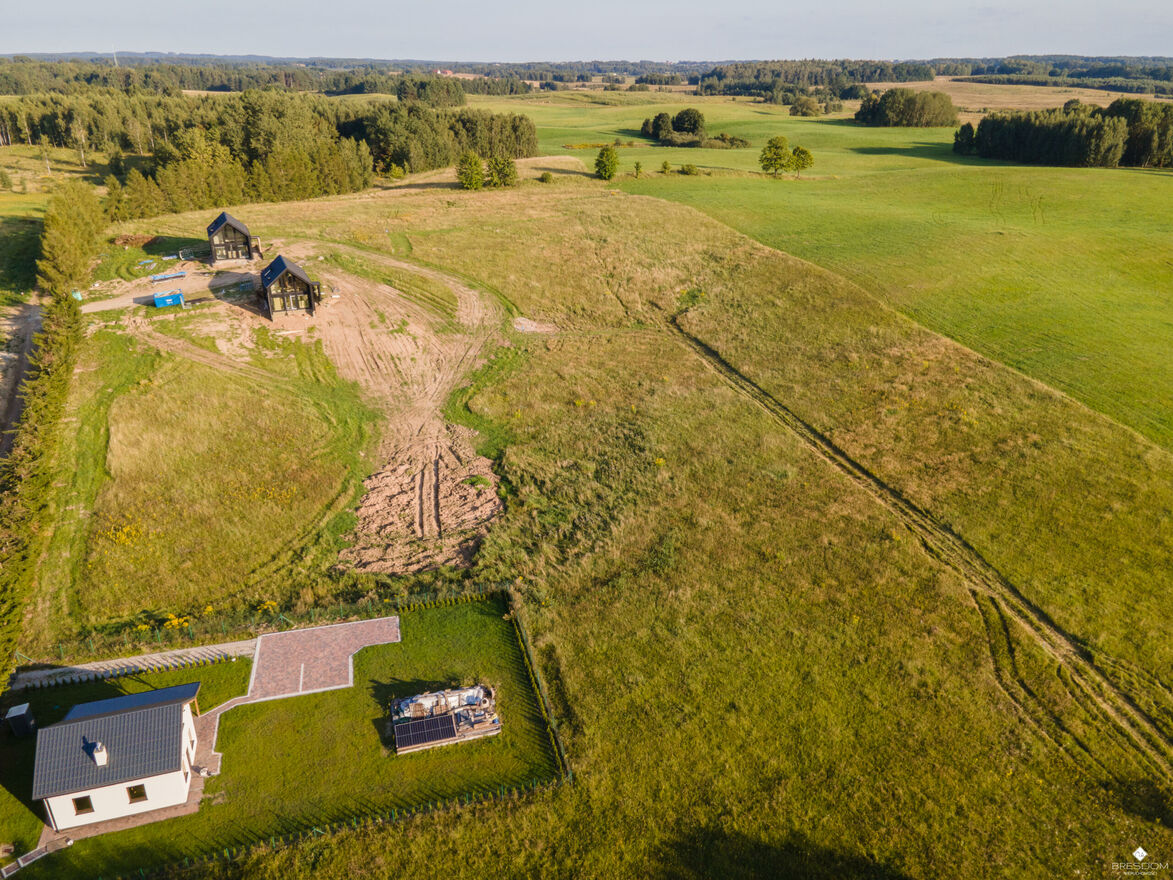 Z kilku położonych najwyżej działek, rozciąga się piękny widok na jezioro i okolicę.